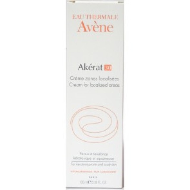 Η Κρέμα για εντοπισμένες ζώνες Akérat 30 ενδείκνυται ειδικά για το δέρμα με τάση υπερκεράτωσης σε πολύ εντοπισμένες ζώνες : χρόνιες υπερβολικές παχύνσεις στο σώμα και το τριχωτό του κεφαλιού.