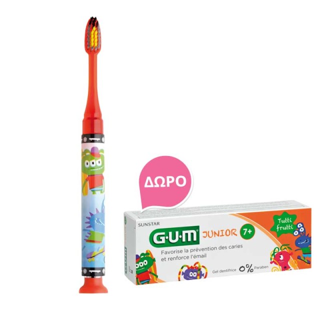 Η οδοντόκρεμα GUM Junior έχει ειδικά σχεδιαστεί με το πατενταρισμένο συνδυασμό φθορίου και ισομαλτόζης για την προηγμένη πρόληψη της τερηδόνας και την επαναμετάλλωση της αδαμαντίνης.